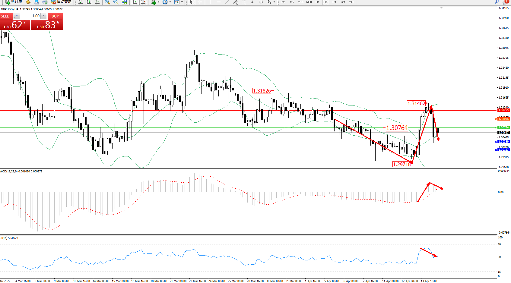 英镑美元GBPUSD ——4小时K线图显示: