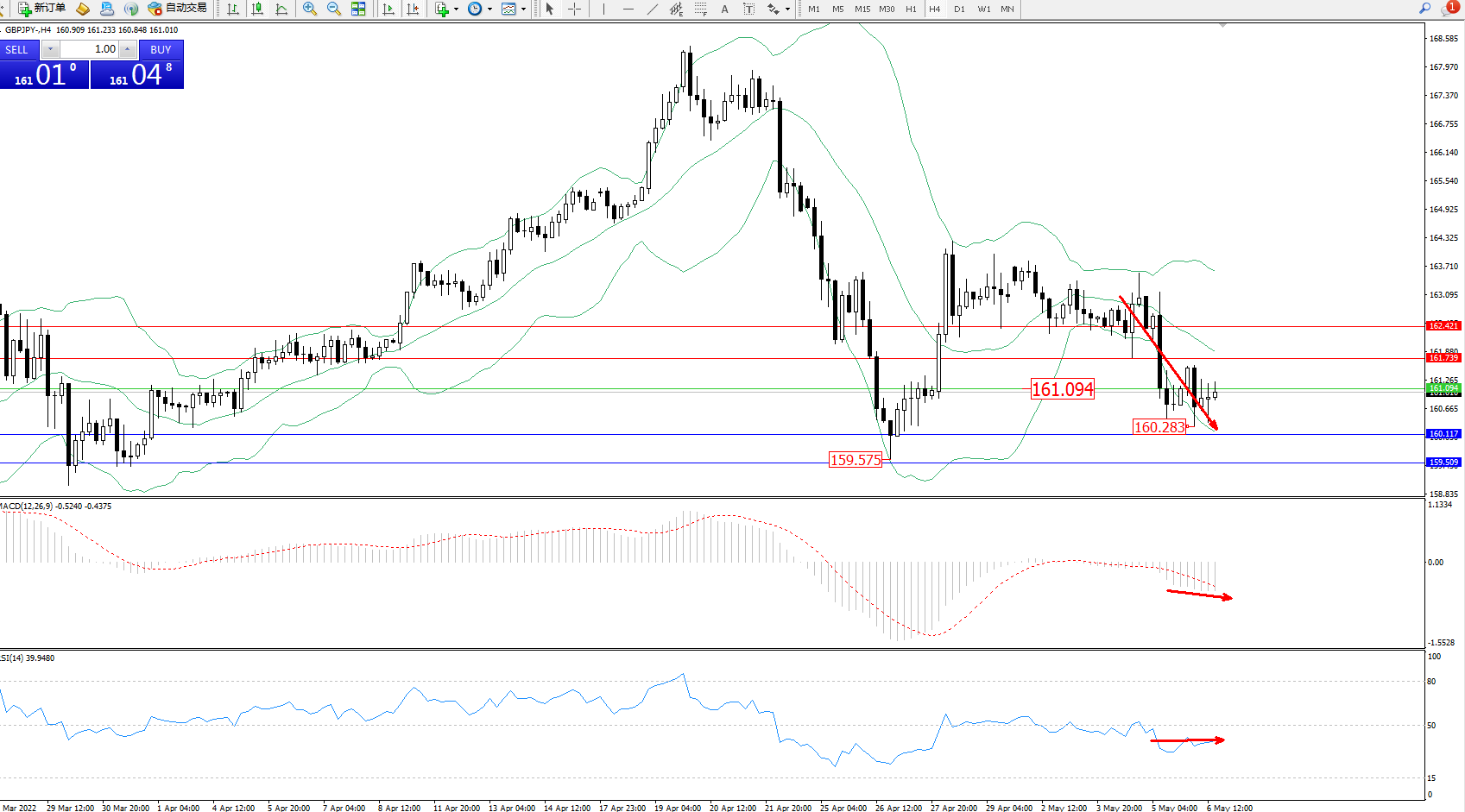 交易策略:161.094下方看跌,目标160.117、159.509