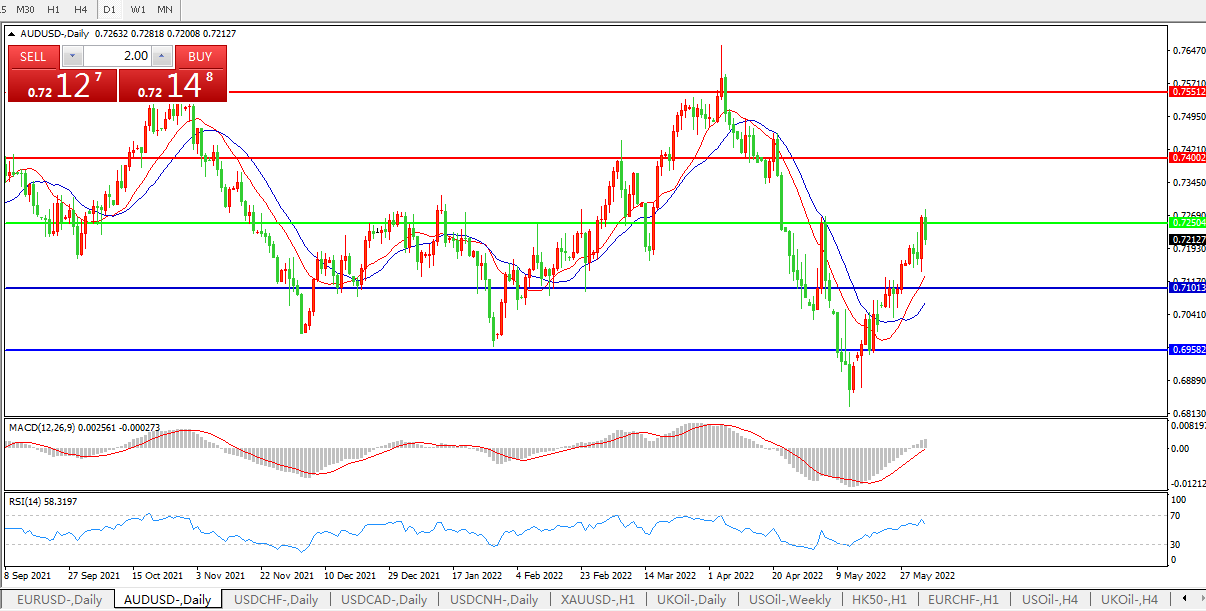 交易策略:0.7250上方看涨,目标0.7400、0.7550