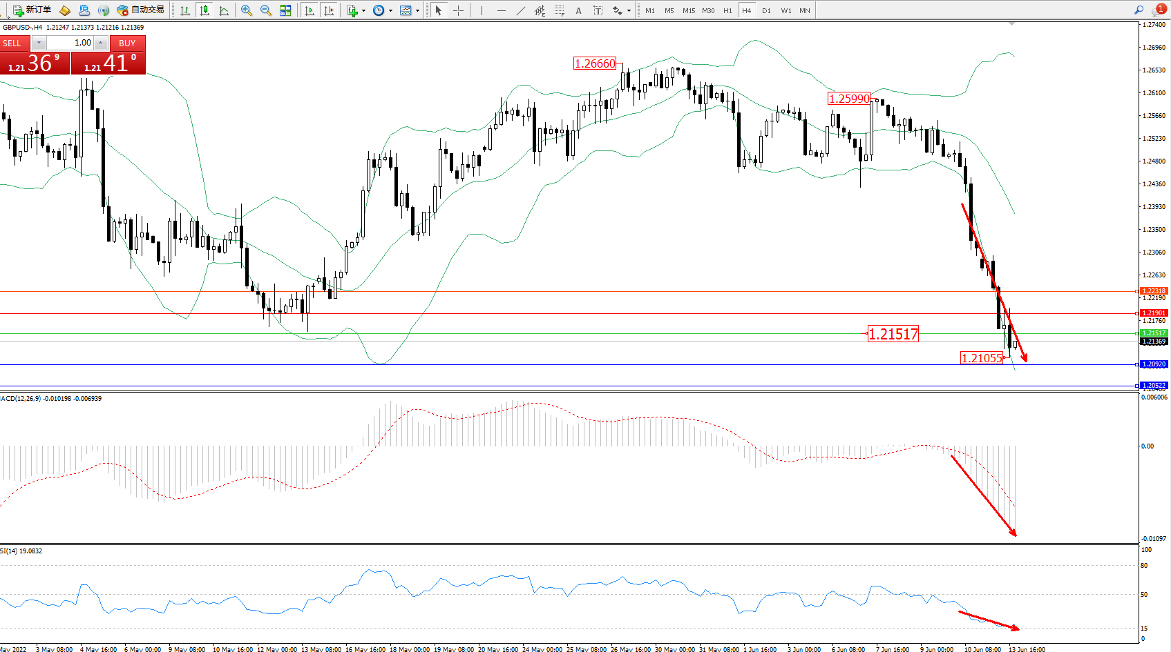 英镑美元GBPUSD ——4小时K线图显示: