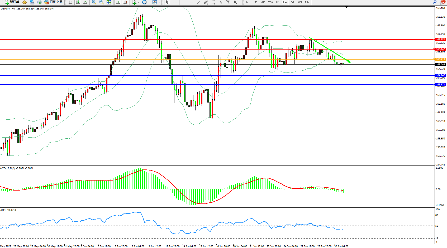 交易策略:165.413下方看跌,目标164.242、163.571