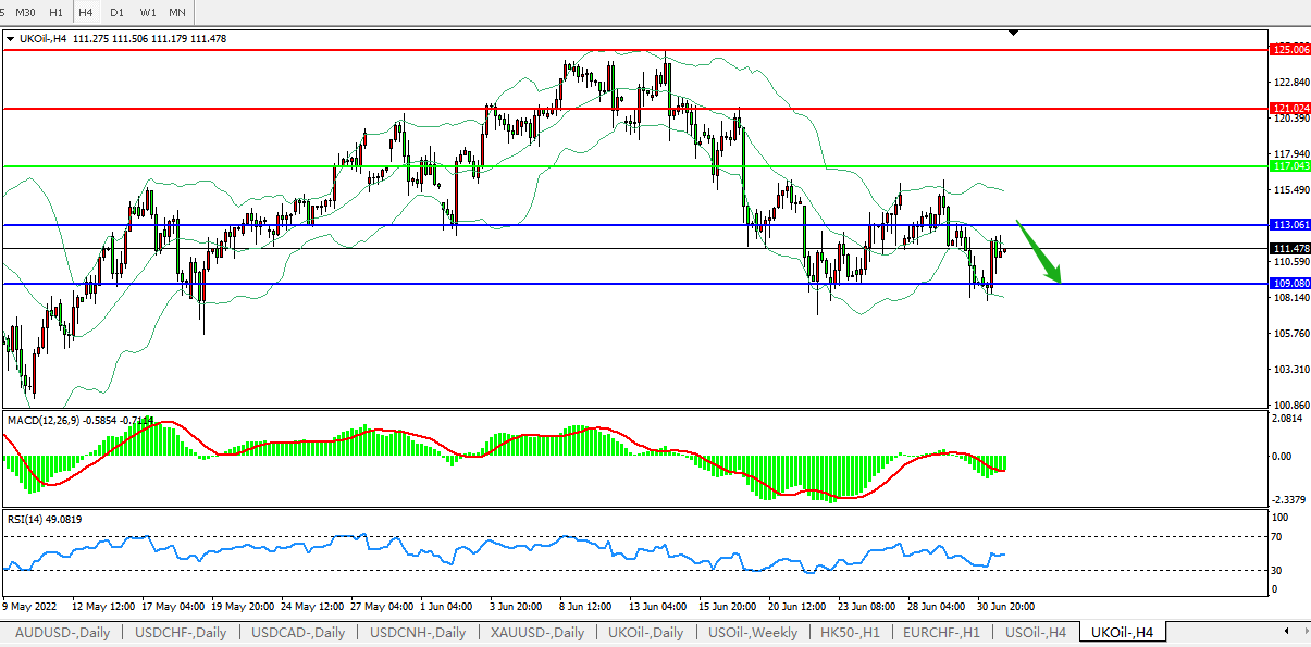 4小时图看:短线汇价自布林下轨往中轨整理运行,试探中轨,布林指标开口发散下移, MACD量能柱缩量,RSI小幅走升,短期反弹后再度走弱概率较大。