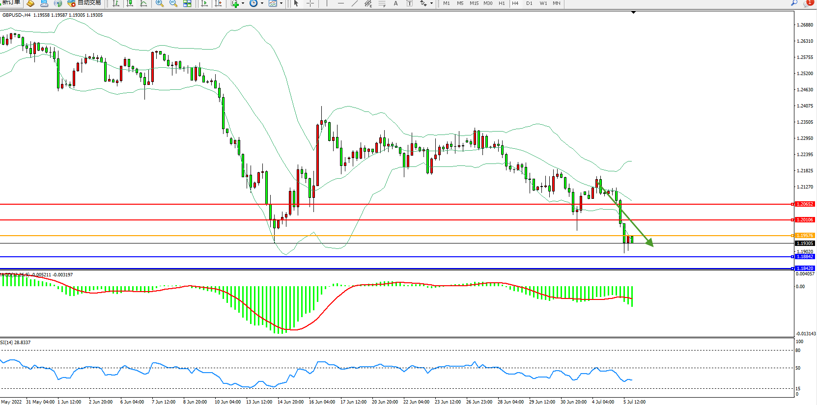 英镑美元GBPUSD ——4小时K线图显示:
