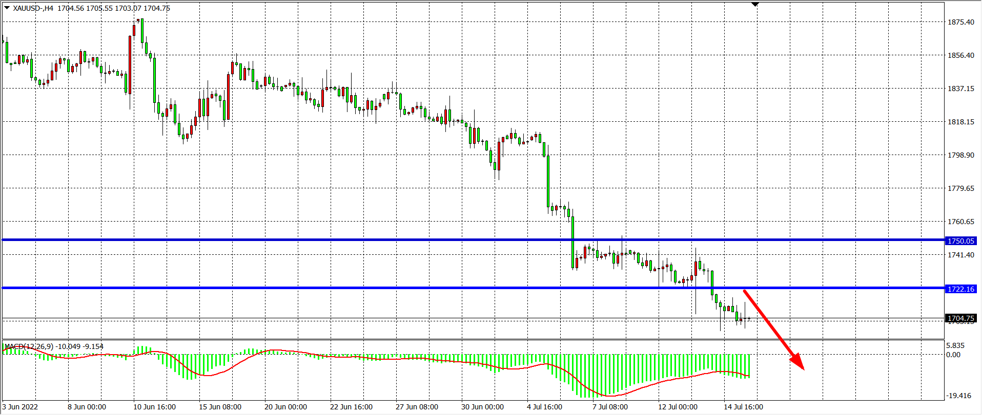 黄金:1722之下空头趋势