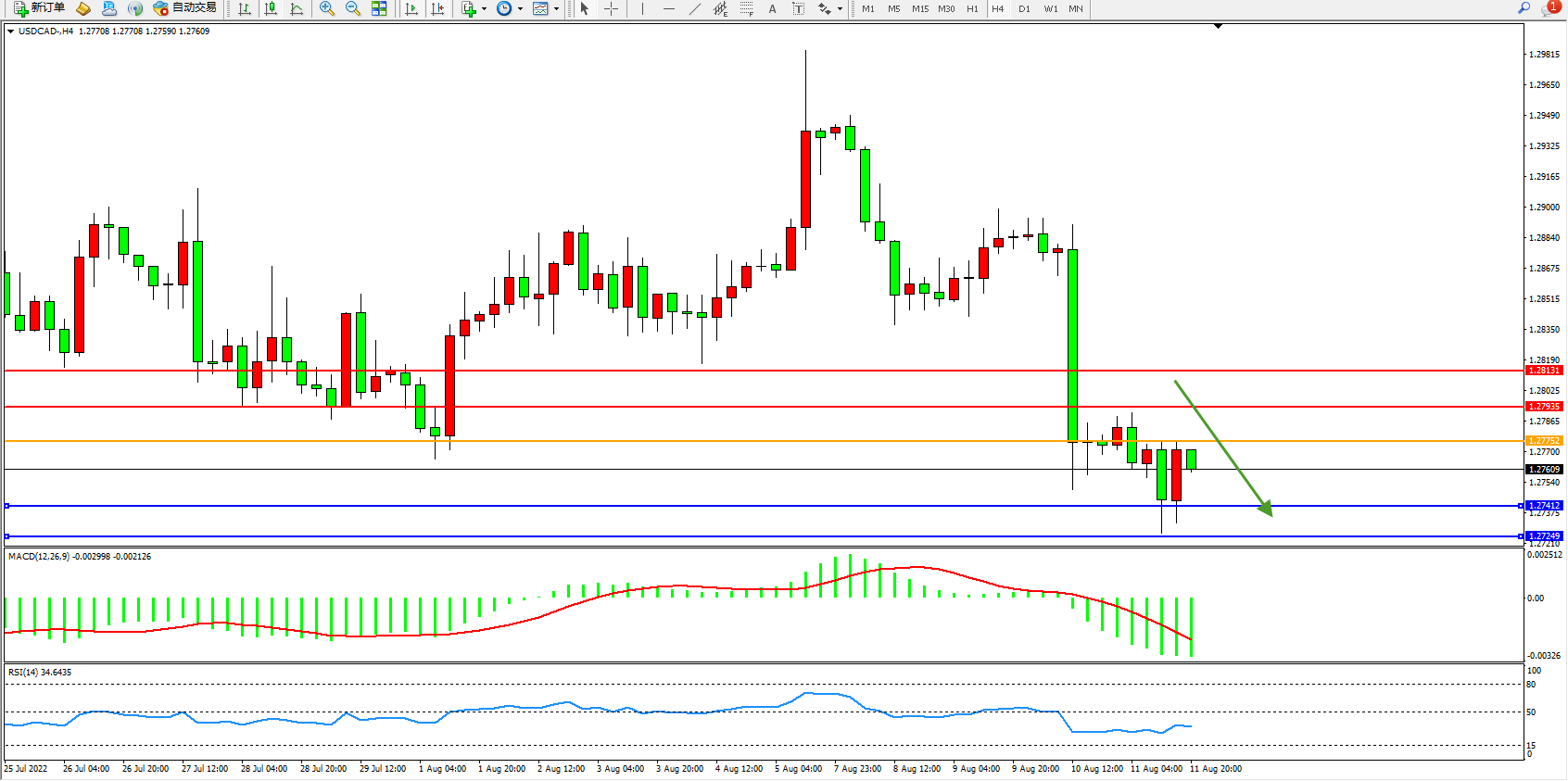 交易策略:1.27752下方看跌,目标1.27112、1.27249