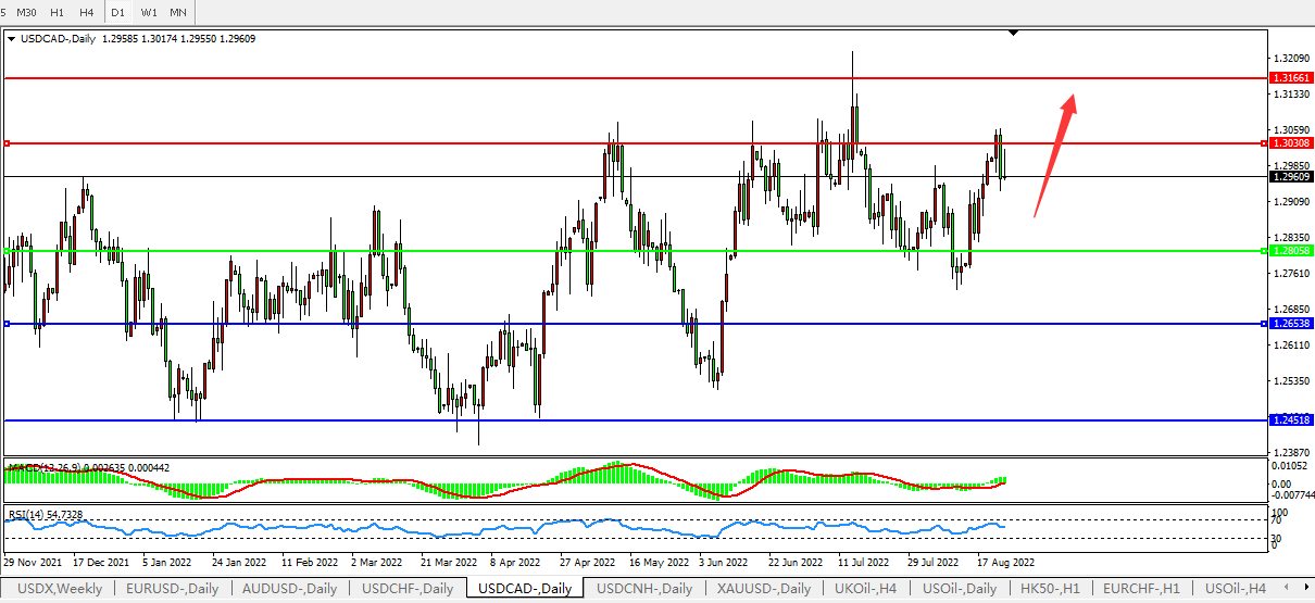 日线图看:短期汇价小幅拉升后再度下行,MACD运行于0轴上且量能0轴上开始缩量,RSI整理下行,预计短期汇价大概率将在回测整理后进一步上行。
