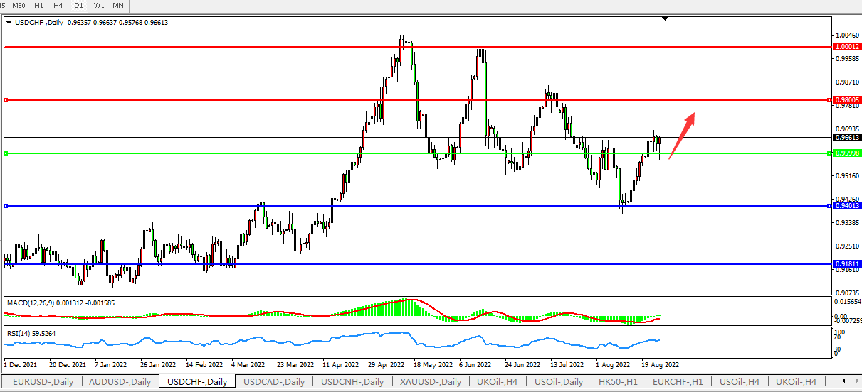 交易策略:0.9600上方看涨,目标0.9800,1.0000