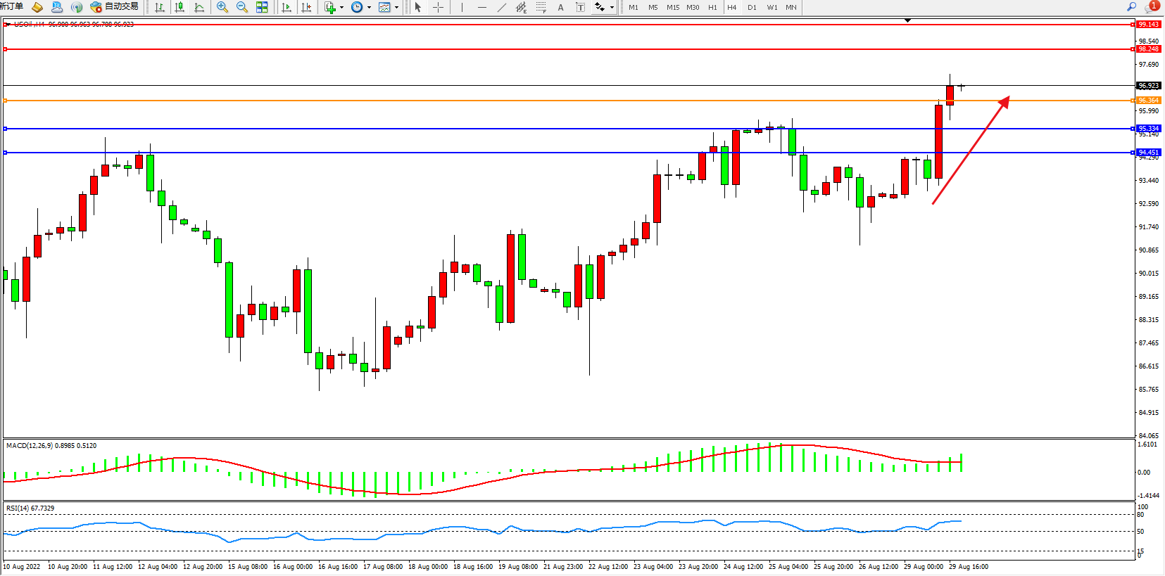 原油USOil——4小时K线图显示: