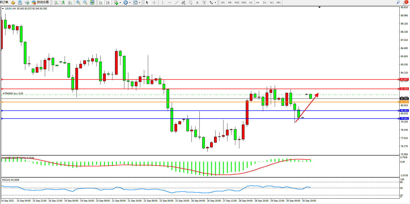 原油USOil——4小时K线图显示: