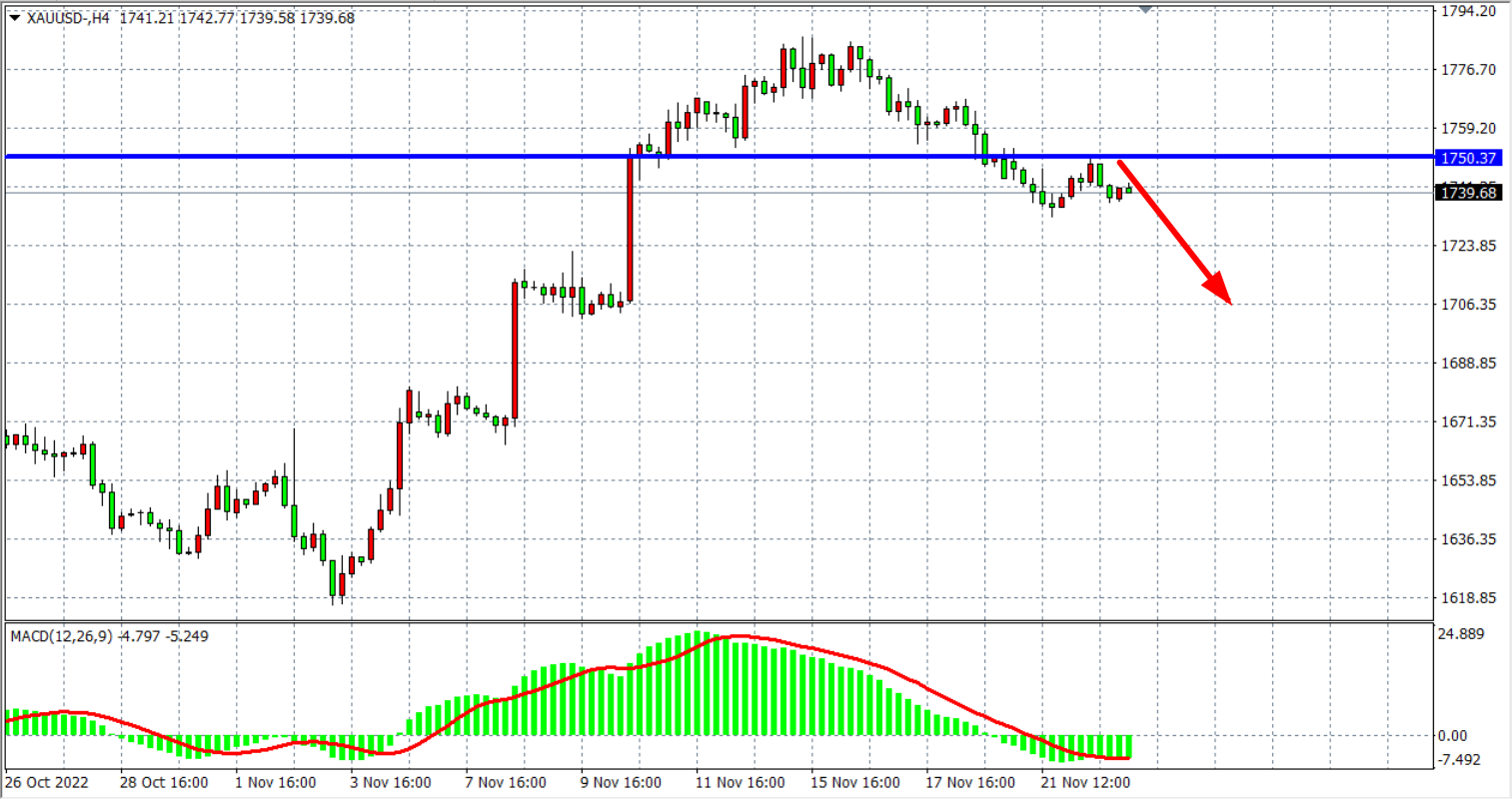交易策略:在1750.00 之下看跌,目标1730.00         1715.00