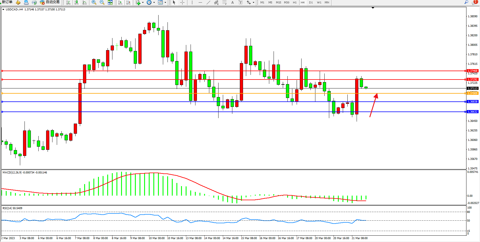 美元兑加元维持1.37113附近震荡,加拿大2月CPI年率 5.2%,预期5.40%,前值5.90%。加拿大通胀和基本价格压力均大致缓解,符合预期,这支持了加拿大央行维持利率不变的理由,尽管就业健康增长。