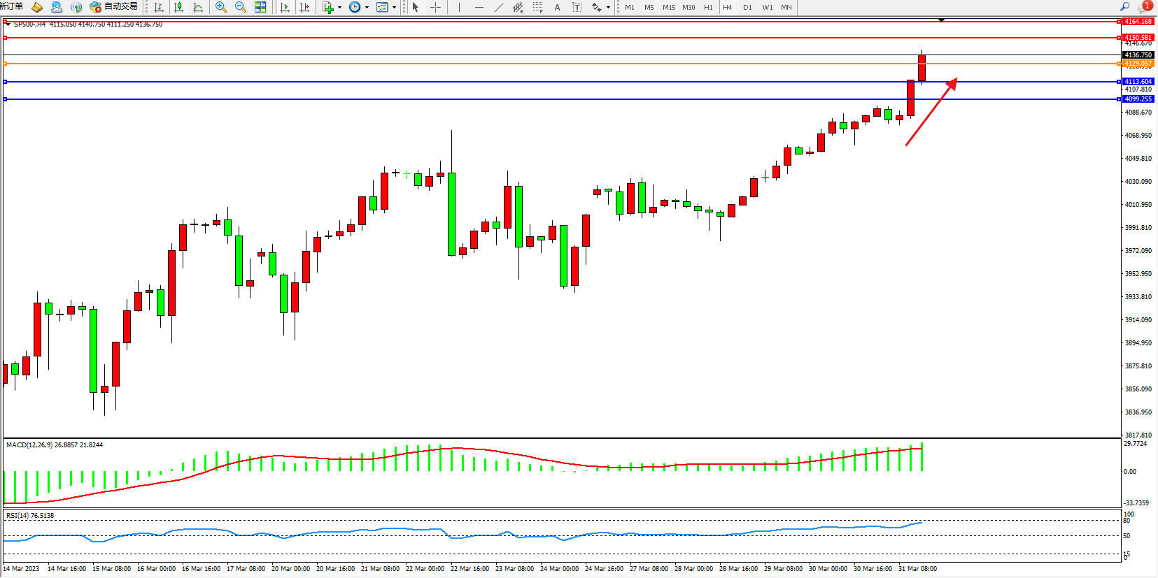 标普SP500——4小时K线图显示: