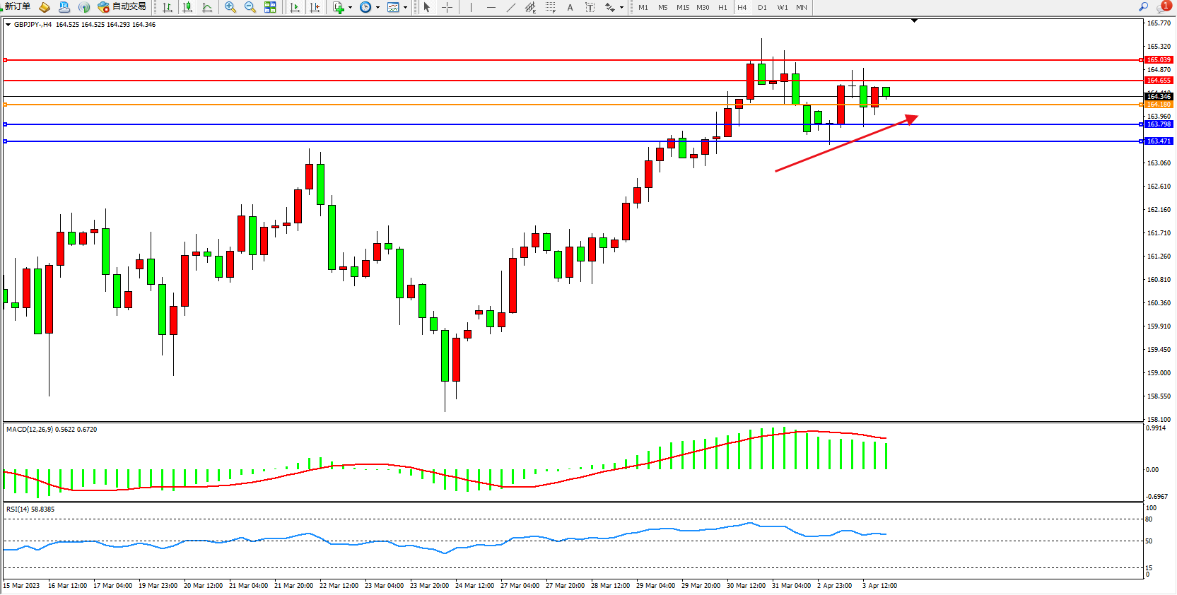 交易策略:164.180上方看涨,目标164.655 165.039