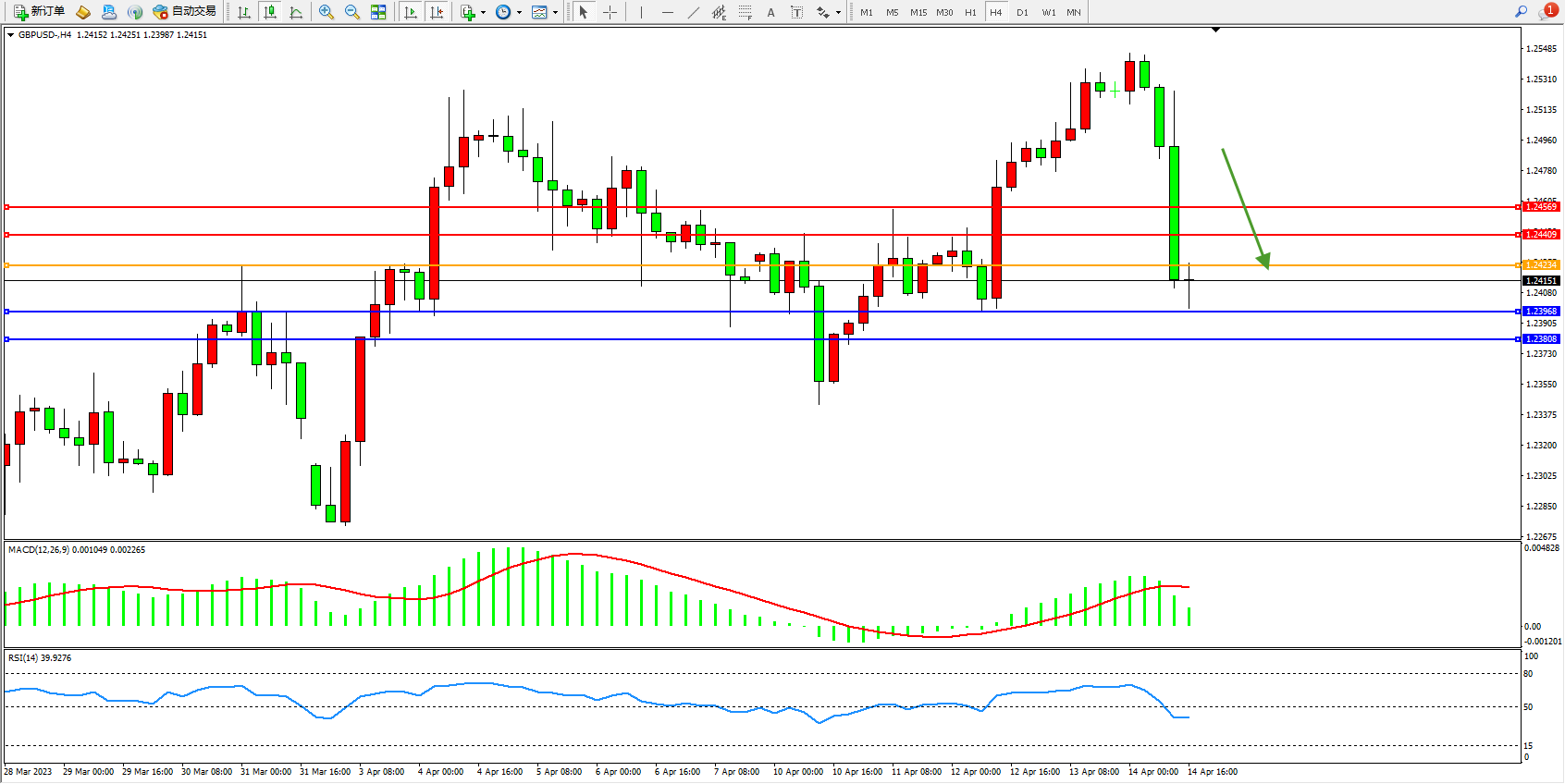 交易策略:1.24234下方看跌,目标1.23968 1.23808