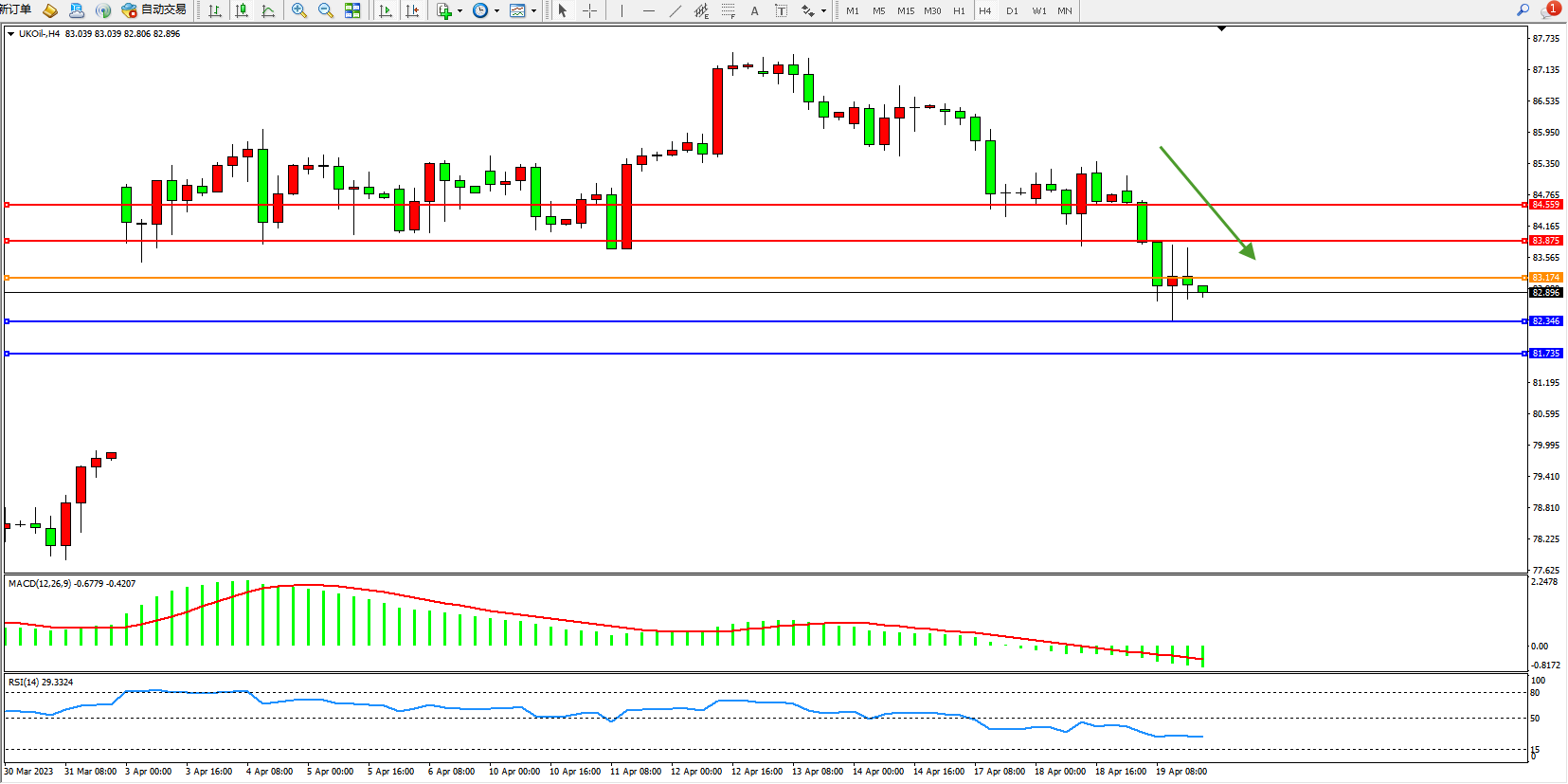 交易策略:83.174下方看跌,目标82.346  81.735