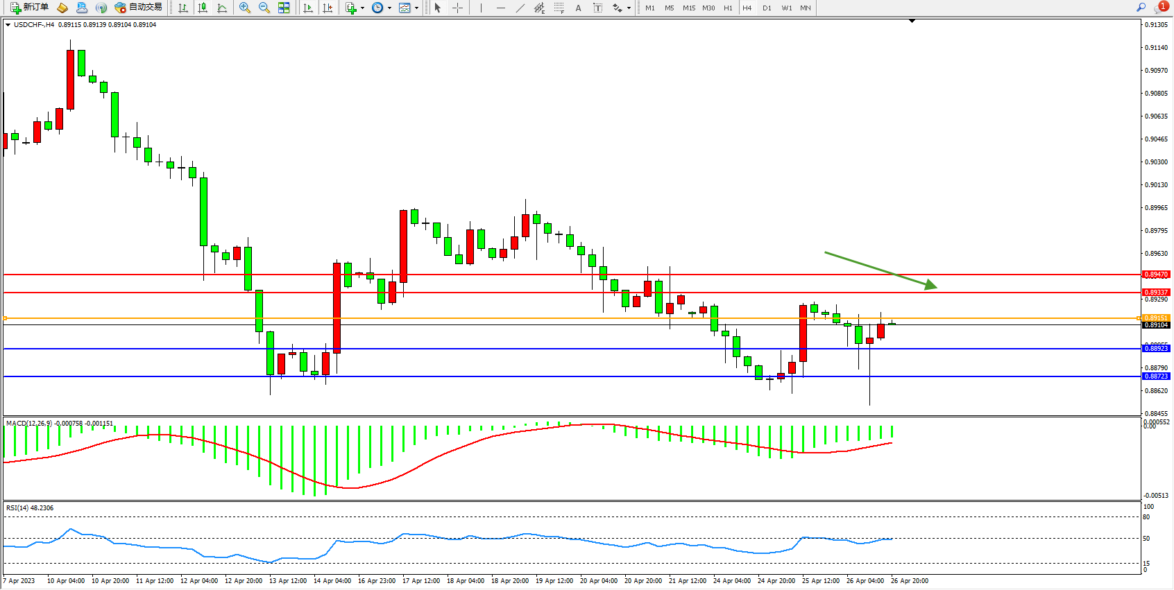交易策略:0.89151下方看跌,目标0.88923  0.88723