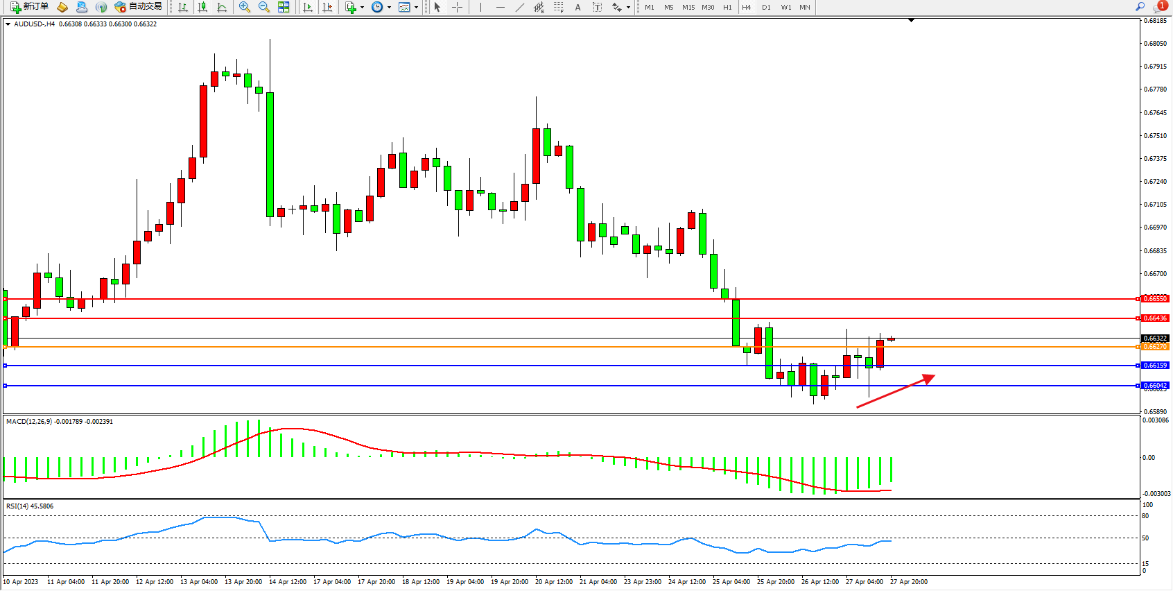 交易策略:0.66270上方看涨,目标0.66436 0.66550