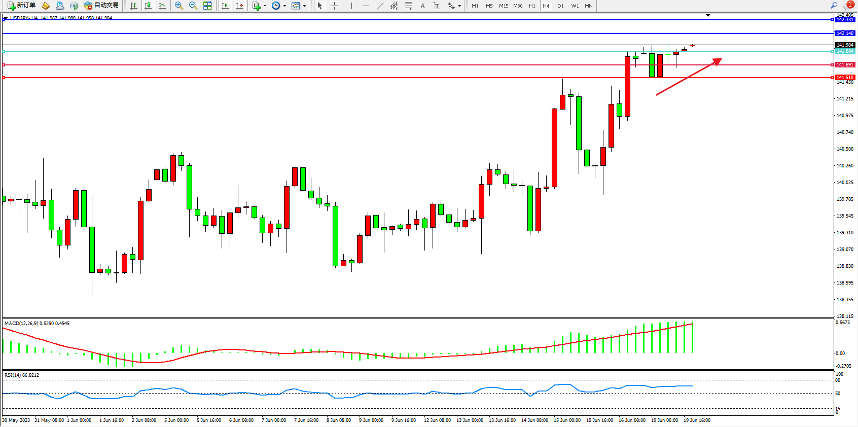 4小时图看:高位多头动力维持震荡上移,市场看涨情绪持续,短期有继续向上移动迹象,MACD指标处于多头区域高位整理,RSI指标处于多头区域维持震荡;