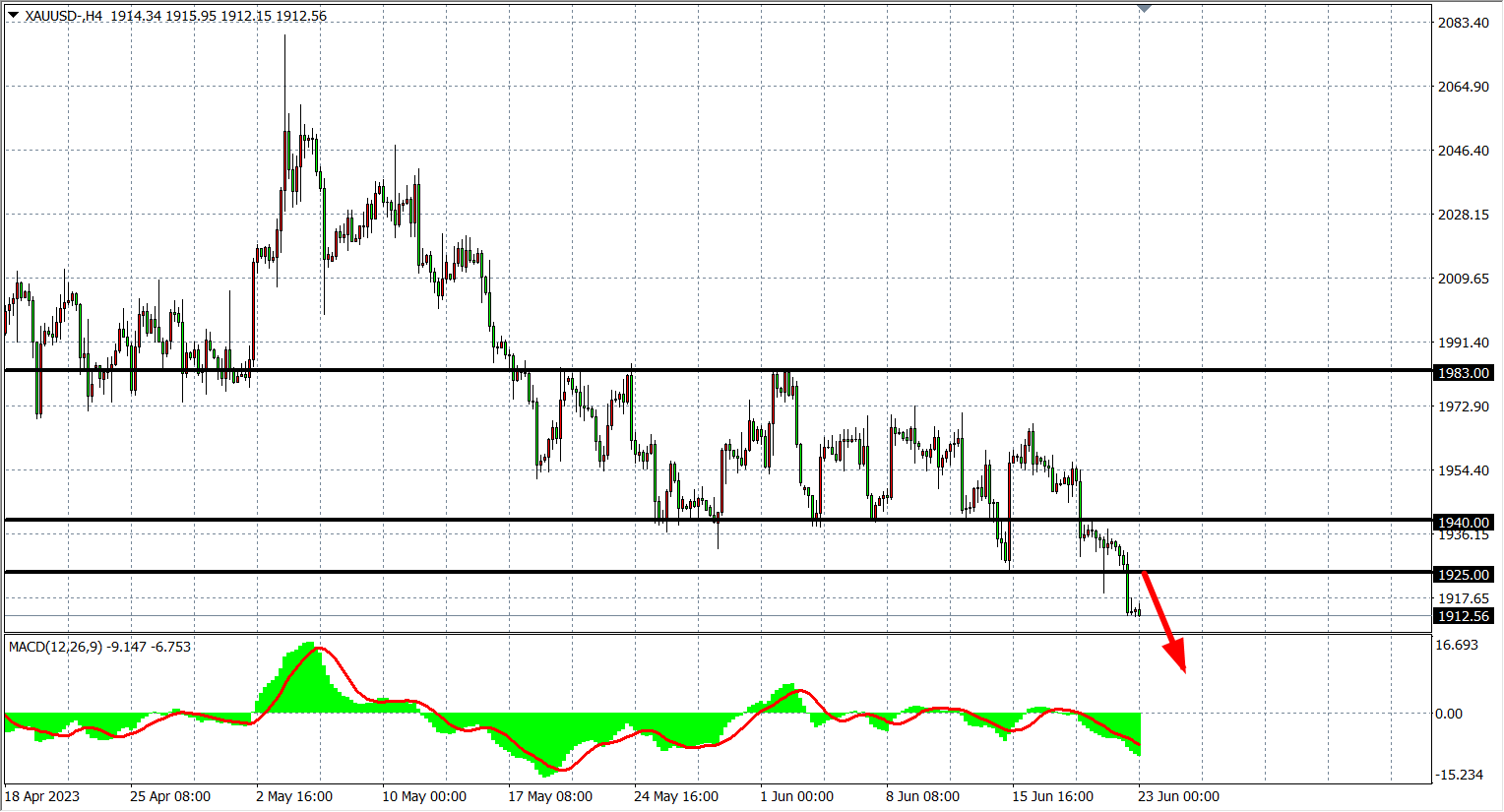 周四(6月22日)美联储主席鲍威尔连续两天出席国会的半年度货币政策报告听证会,一再强调年内还有两次加息,受累于美联储继续加息的鹰派倾向,美指、美债收益率大幅反弹,现货黄金跌近1%,并跌破1920美元关口。