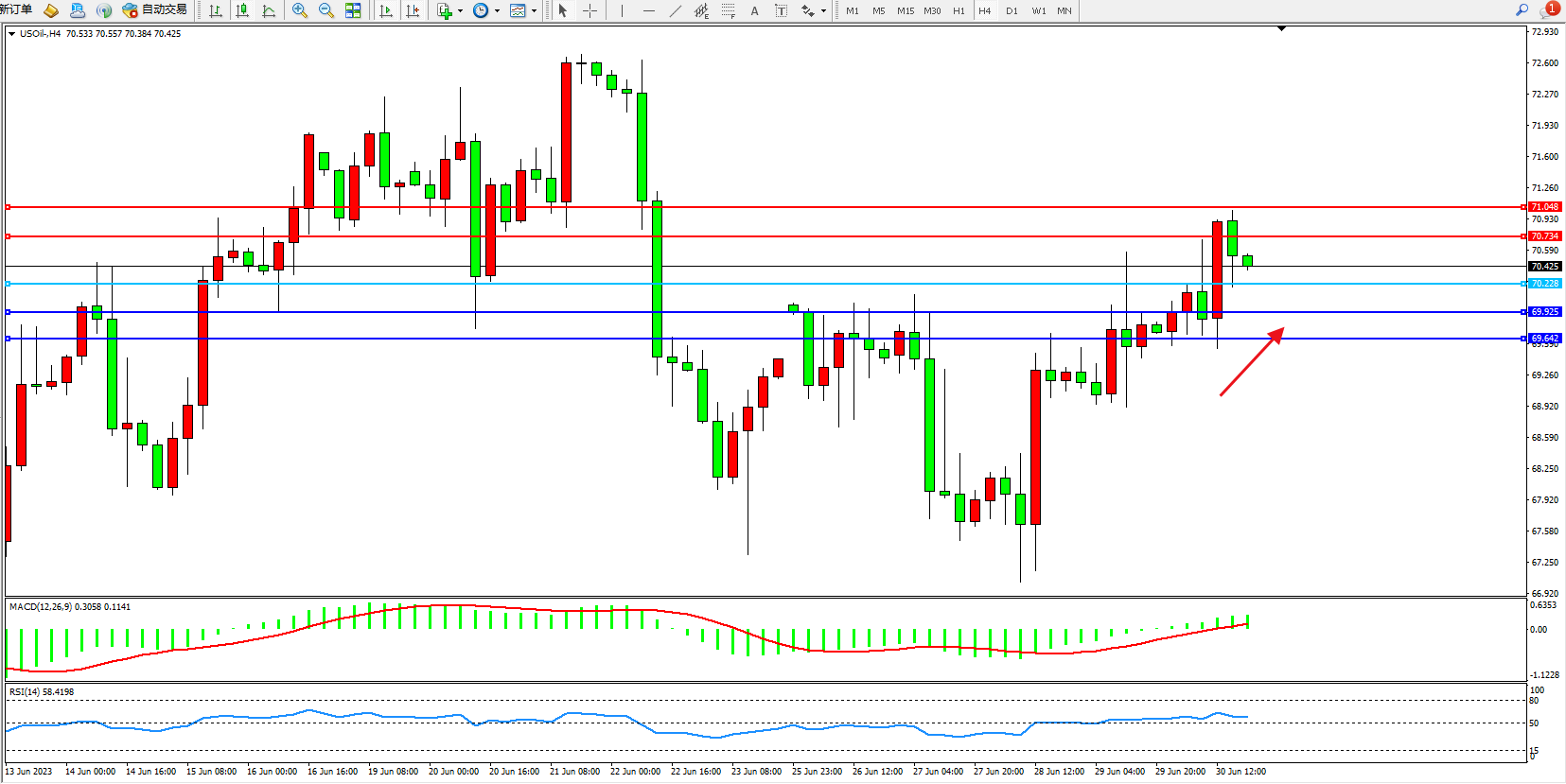 原油USOil——4小时K线图显示: