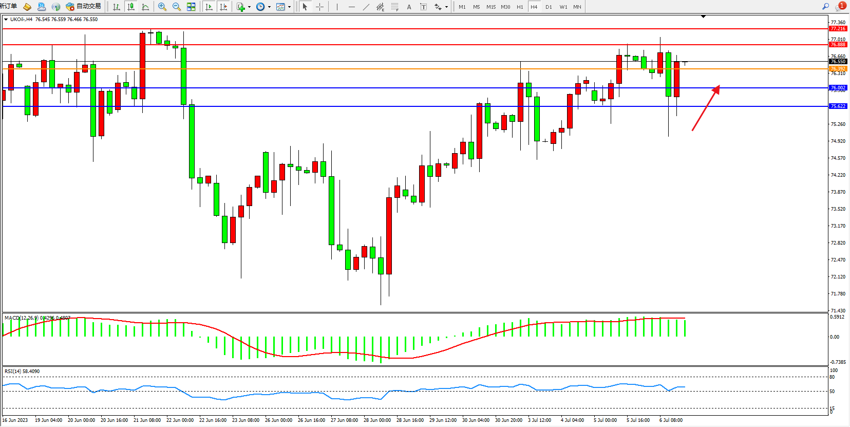 布油维持76.550附近震荡,EIA报告:06月30日当周美国原油出口减少143.7万桶/日至390.1万桶/日,06月30日当周美国除却战略储备的商业原油进口703.8万桶/日,较前一周增加45.8万桶/日。