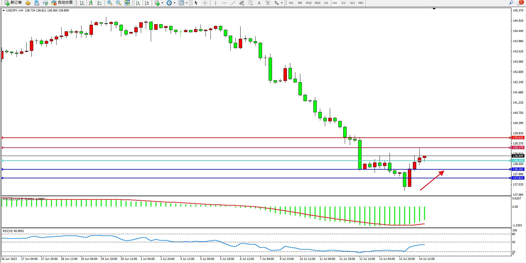 备选策略:138.593下方看跌,目标138.202  137.812