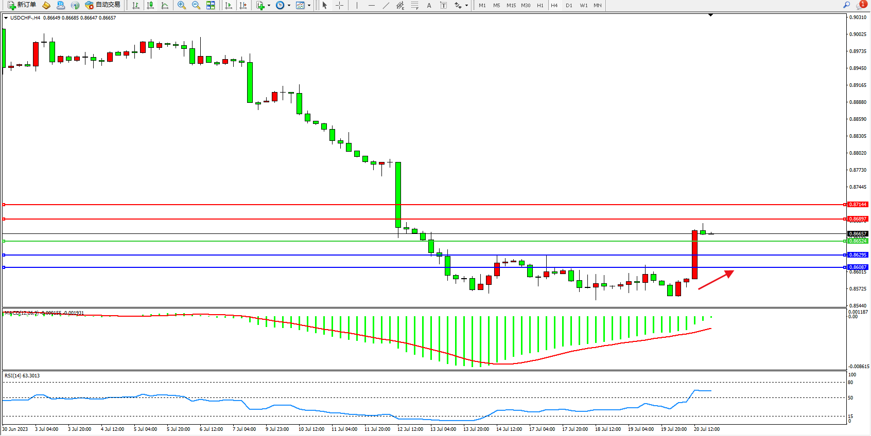 USDCHF:多头拉升 USDCHF  XAUUSD