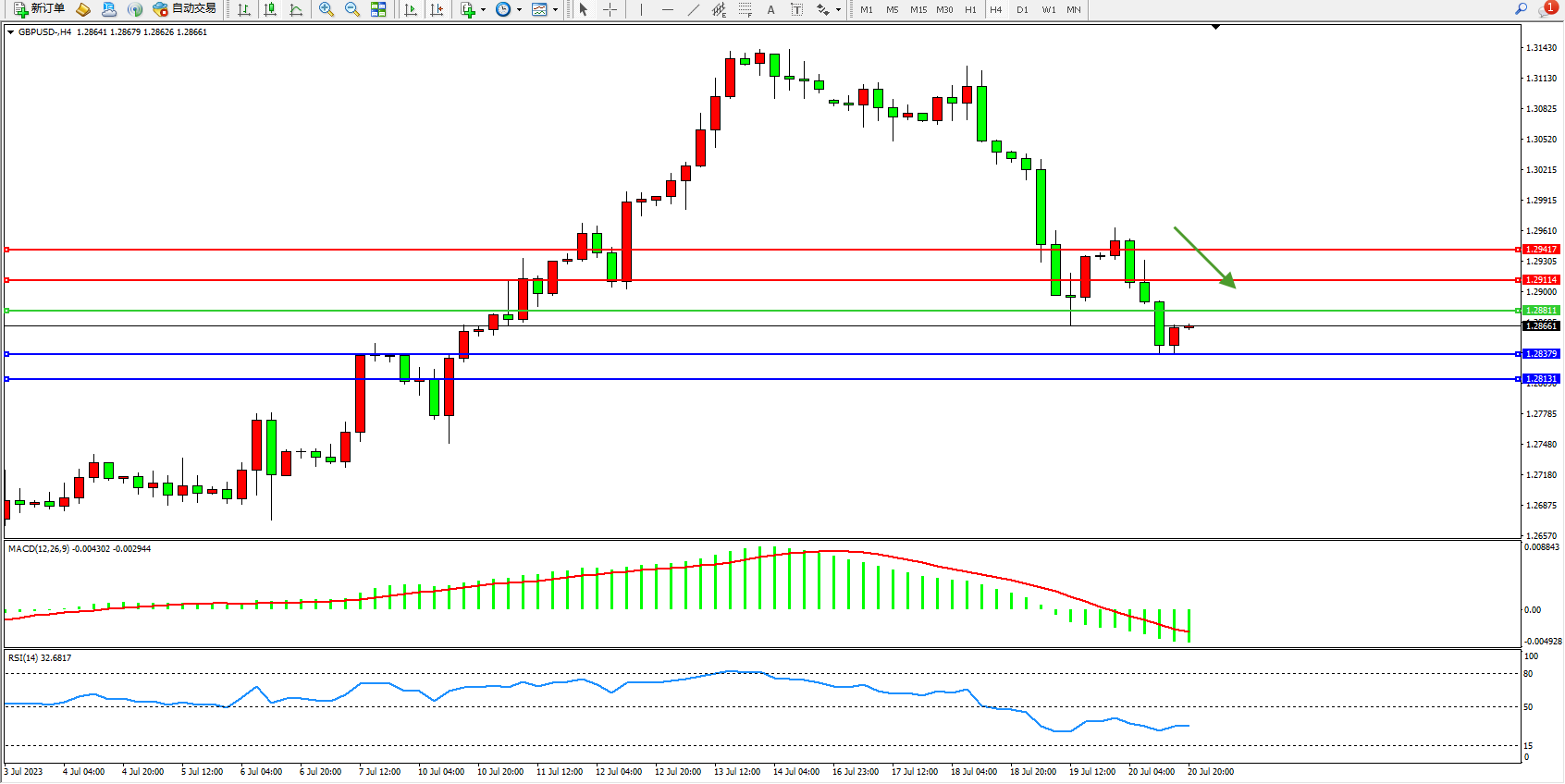 英镑美元GBPUSD ——4小时K线图显示: