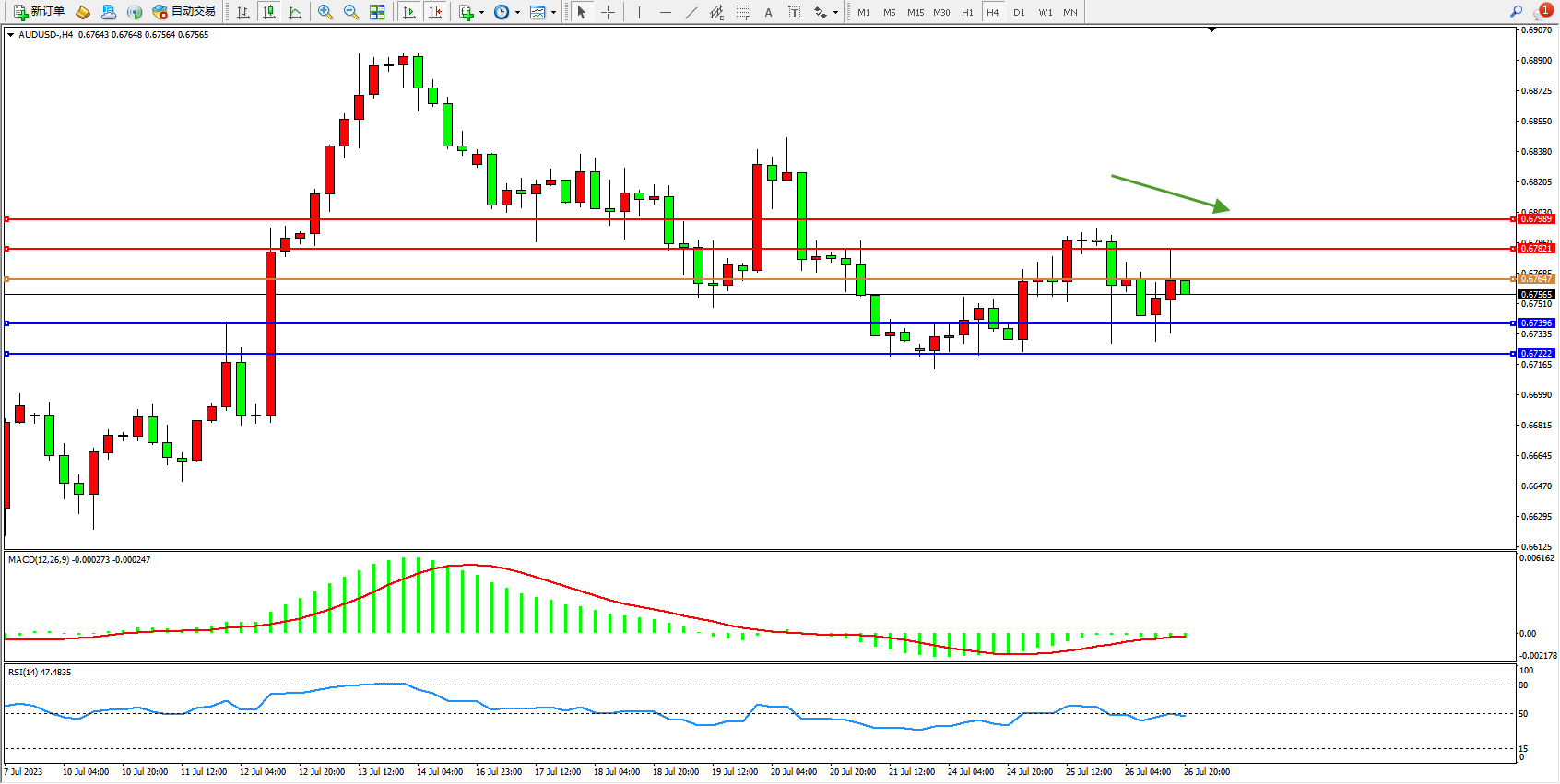 阻力位:0.67821 0.67989