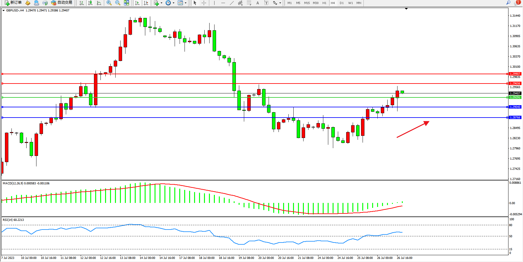 英镑美元GBPUSD ——4小时K线图显示: