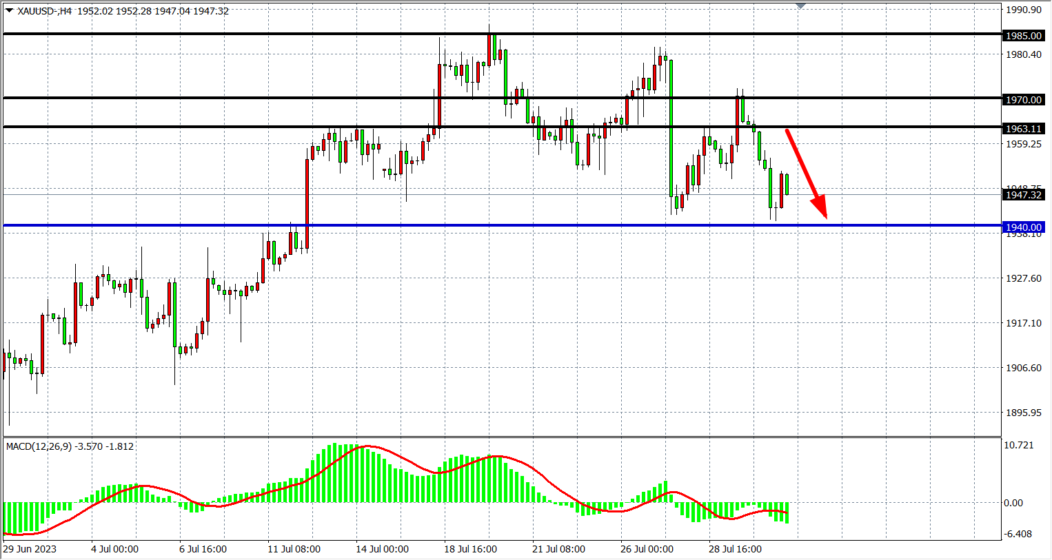 现货黄金XAUUS四小时图