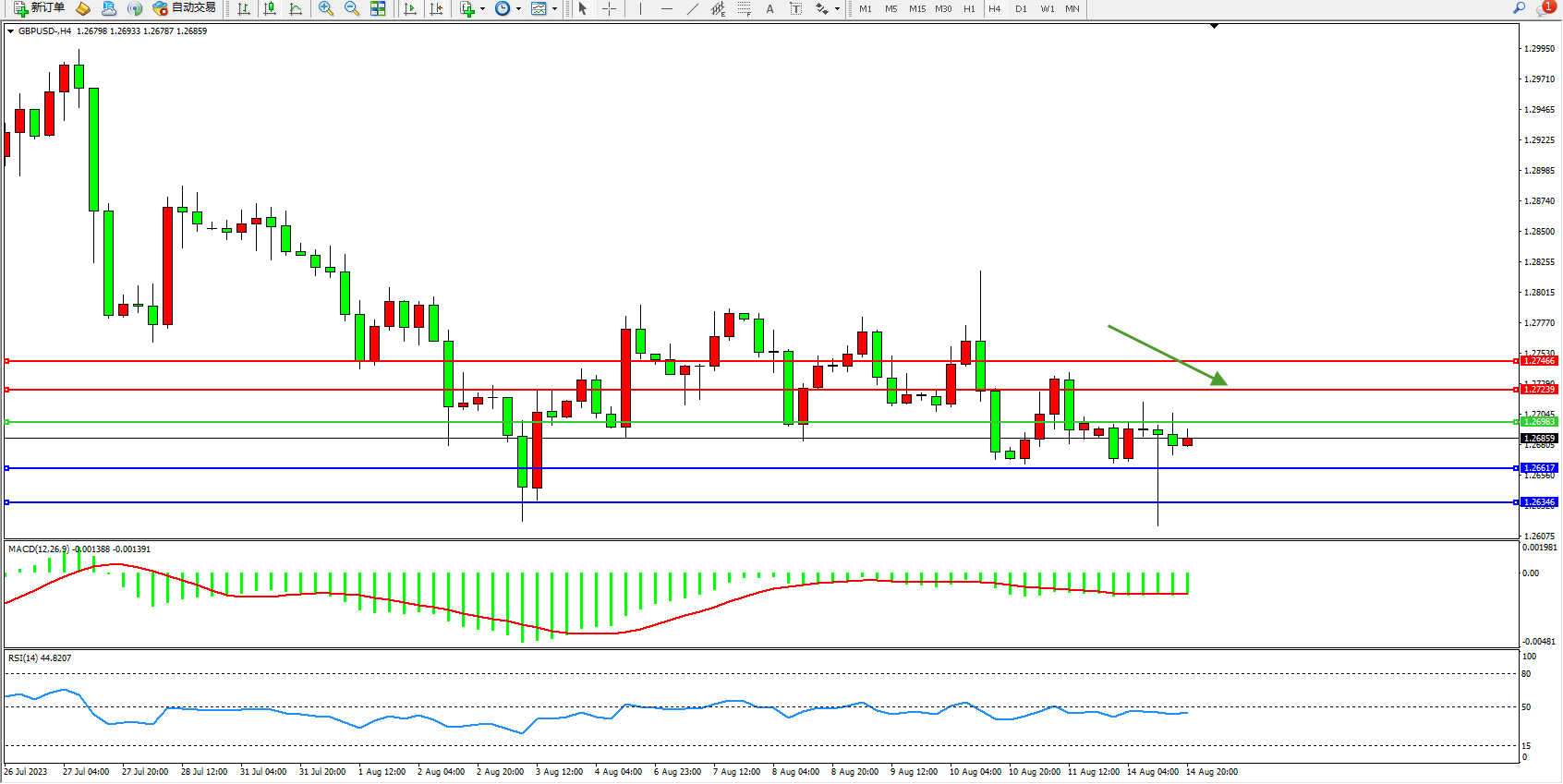 交易策略:1.26983下方看跌,目标1.26617  1.26346