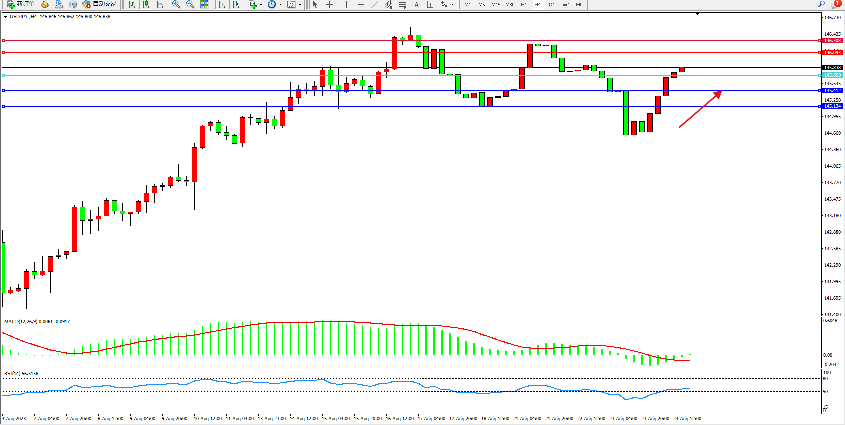 阻力位:146.093  146.308