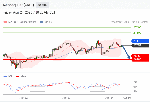 在 27140 之下,看跌,目标价位为 26850 ,然后为 26780 。