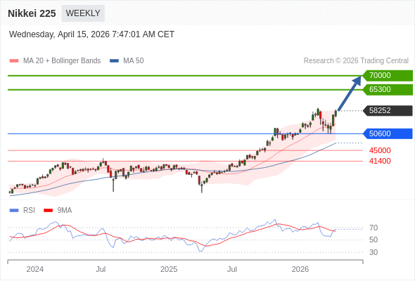 Nikkei 225 中期: 目标位为65300。