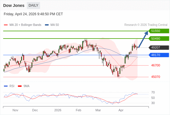Dow Jones 短线: 在48170之上,看涨。