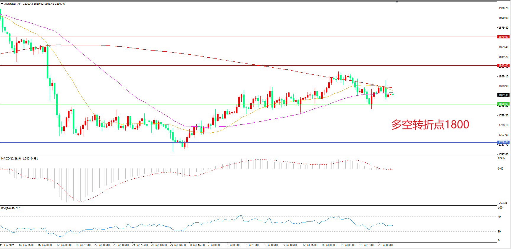 多空转折点:1800.00