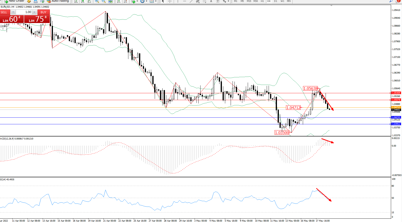 交易策略:1.04712下方看跌,目标1.04232、1.03912